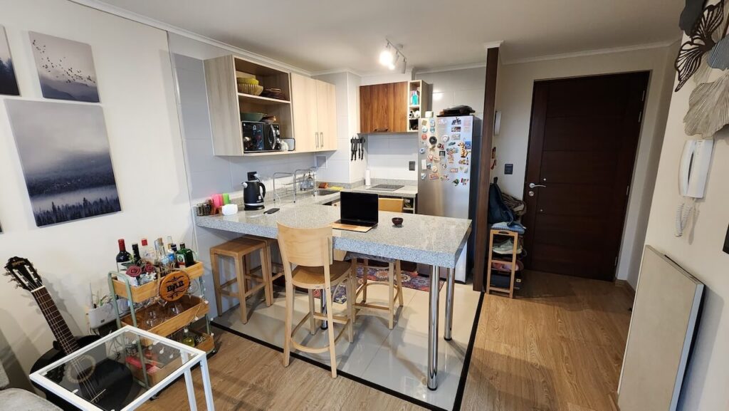 • Baño y cocina con pavimento de porcelanato.