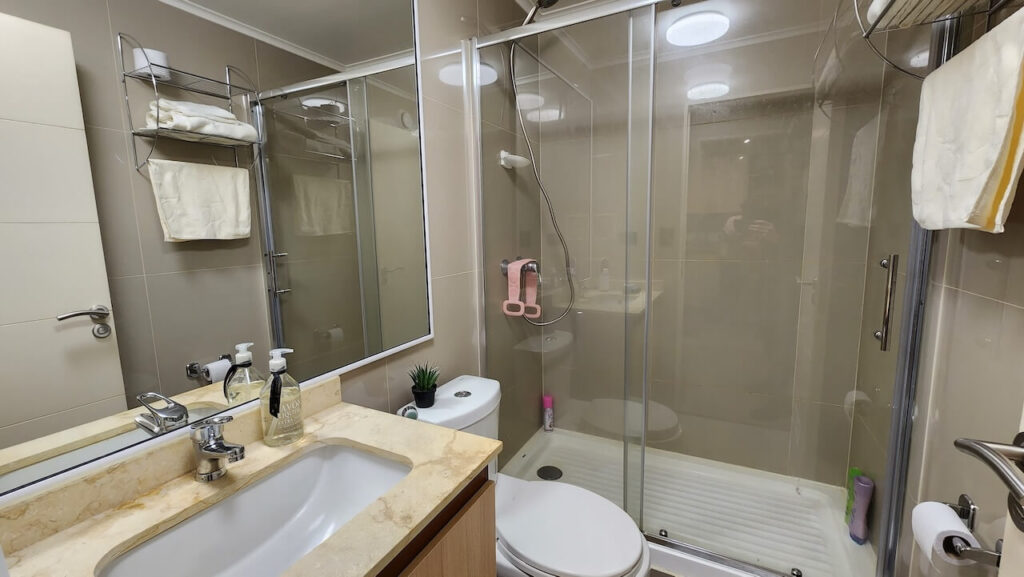 • 1 baño con pie de ducha y mampara vidriada.