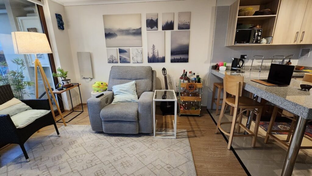 • Living y dormitorio con piso fotolaminado.
